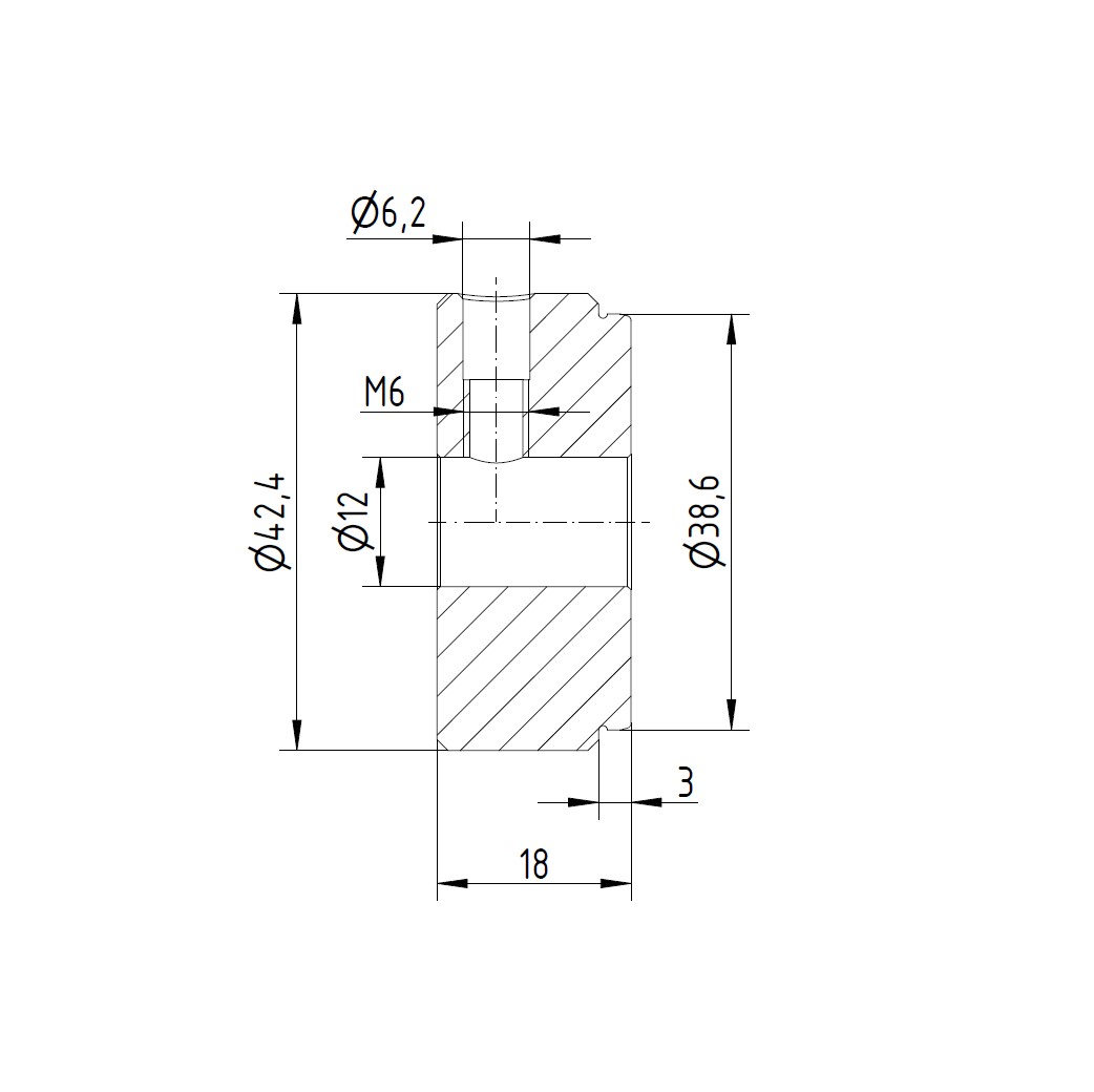 Stahl Einschweißdeckel Ø42,4 mit Durchgangsbohrung Ø12,1 mm und Querbohrung M6 für Rohr Ø42,4 x 2,0 mm