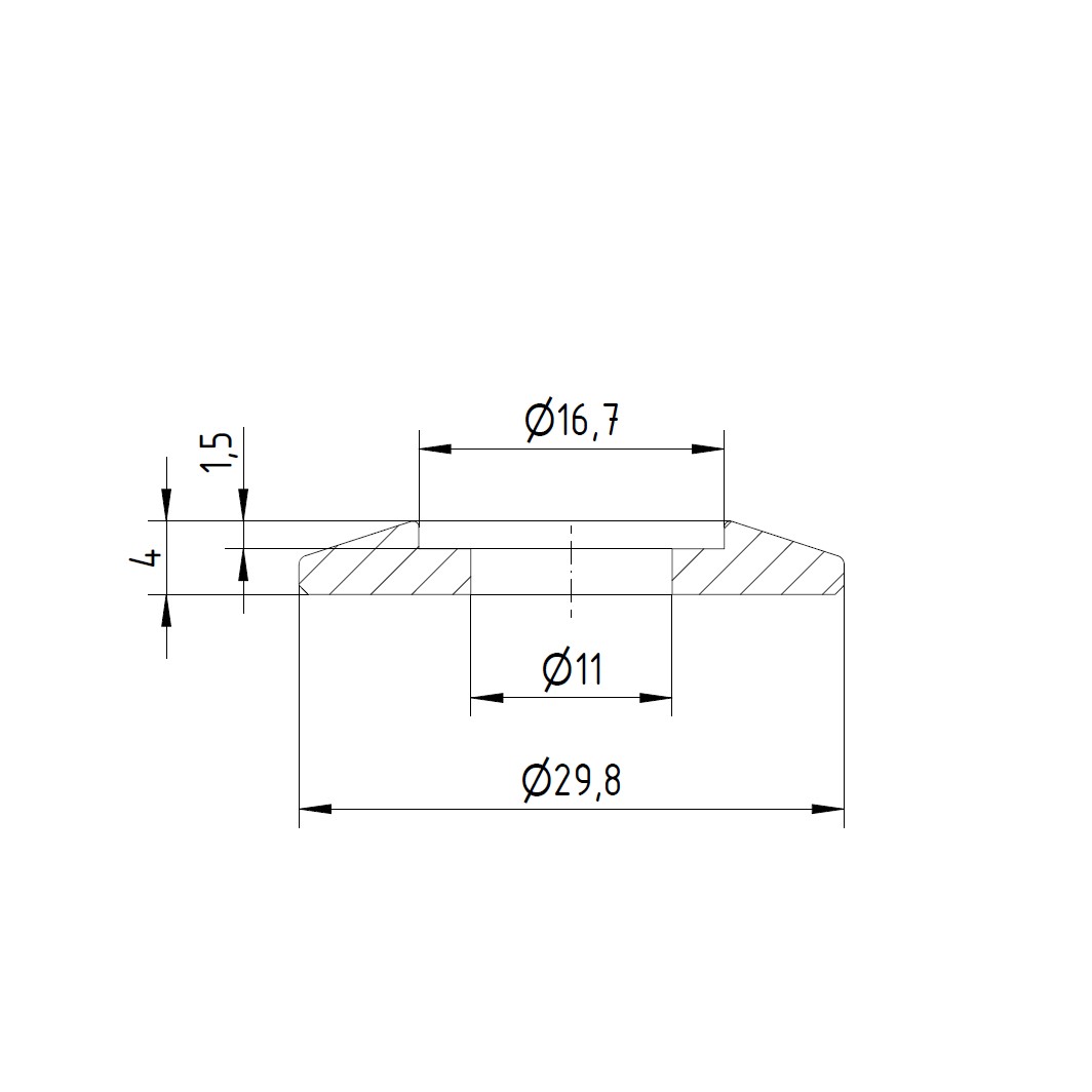 Produktinformationen "Trapezscheibe Ø30x4 mm RAL9006 mit Ausdrehung Ø16,7x1,5 mm und Durchgangsbohrung Ø11 mm beschichtet in silber RAL9006 "