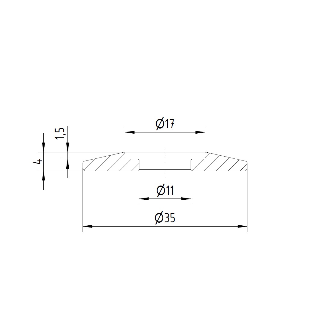 Produktinformationen "Trapezscheibe Ø35x4mm BLANK mit Ausdrehung Ø17x1,5 mm und Durchgangsbohrung Ø11 mm Wst. 1.0718, für Beschichtung "
