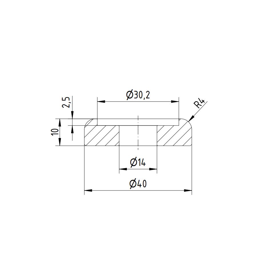 V2A Designscheibe Ø40 x 10 mm mit Ausdrehung Ø30 x 2,5 mm und Durchgangsbohrung Ø14 mm