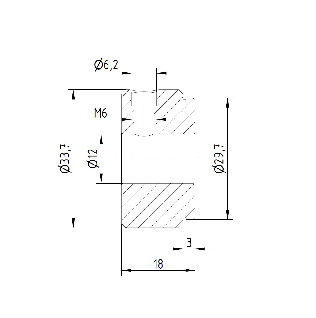 V2A Einschweißdeckel Ø33,7 mit Durchgangsbohrung Ø12,1 mm und Querbohrung M6