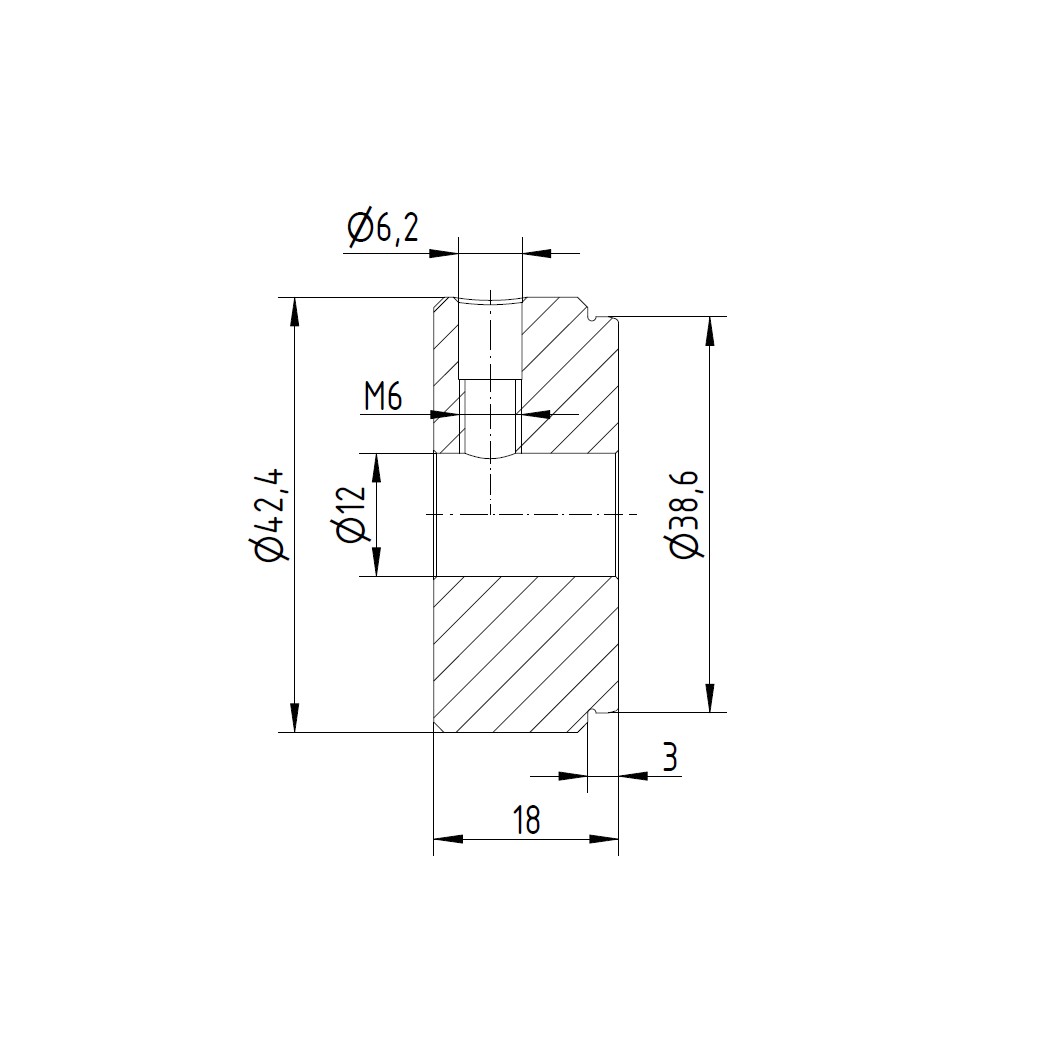 V2A Einschweißdeckel Ø42,4 mit Durchgangsbohrung Ø12,1 mm und Querbohrung M6
