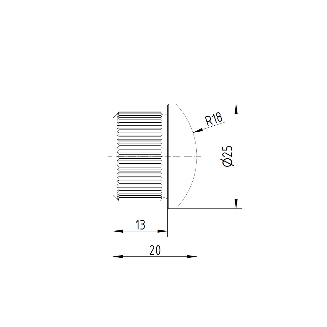 V2A Endkappe Ø25 x 2,0 mm gewölbt, gerändelt für Rohr Ø25 x 2,0 mm zum einschlagen