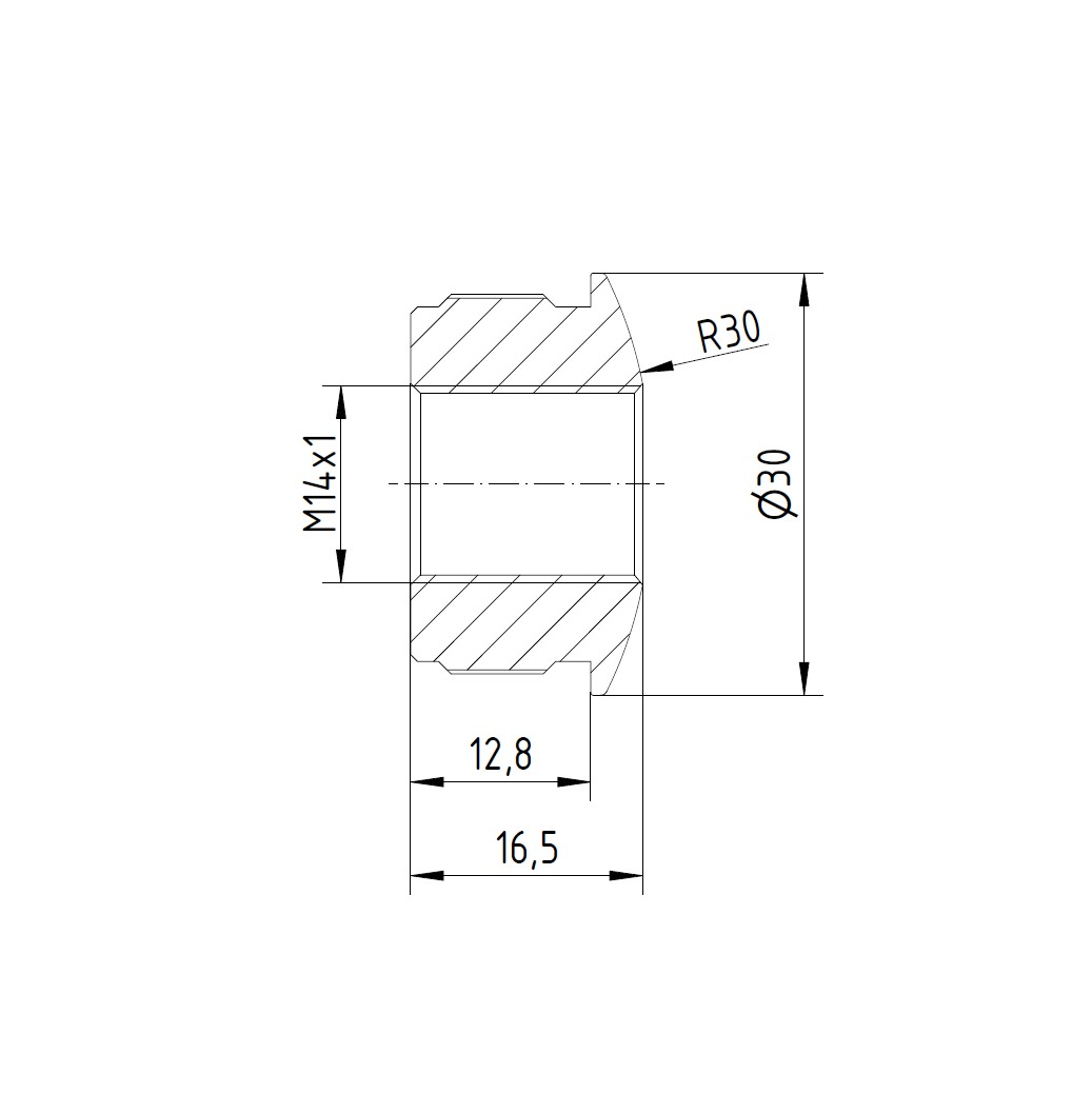 Produktinformationen "V2A Endkappe Ø30 x 1,5 mm gewölbt, gerändelt mit Gewinde M14 für Rohr Ø30 x 1,5 mm zum einschlagen "