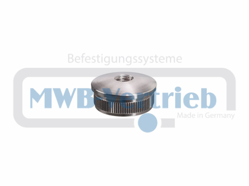 V2A Endkappe Ø30 x 1,5 mm gewölbt, gerändelt mit Gewinde M8 zum einschlagen