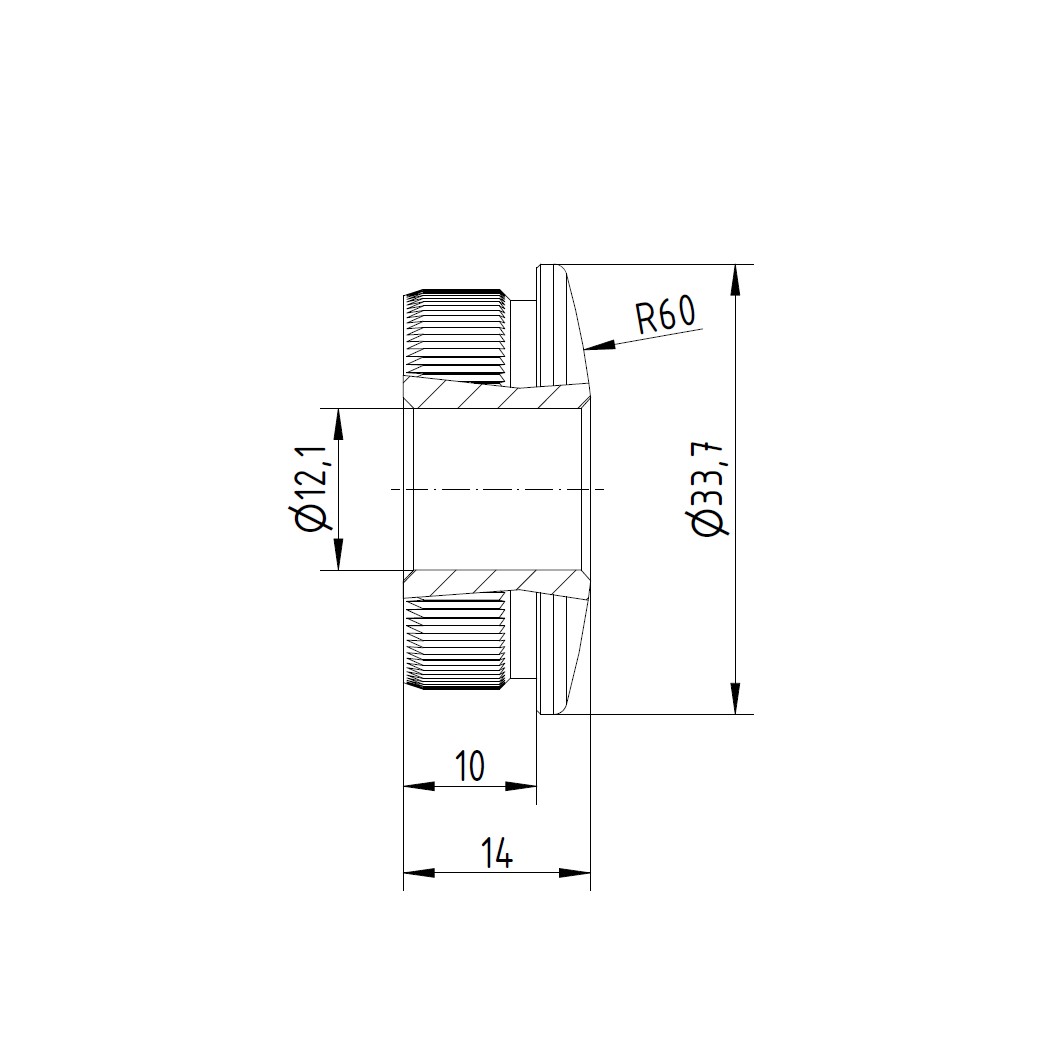Produktinformationen "V2A Endkappe Ø33,7 x 2,0 mm gewölbt, gerändelt, mit Durchgangsbohrung Ø12,1 mm für Rohr Ø33,7 x 2,0 mm zum einschlagen "