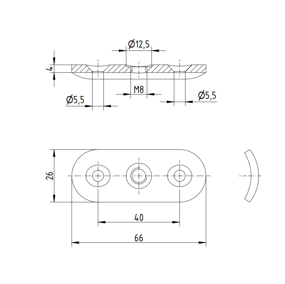 V2A Handlaufträgerplatte rund für Rohr Ø42,4 mm mit Gewinde M8 mittig einseitig geschliffen 1 x Gewinde M8 mittig