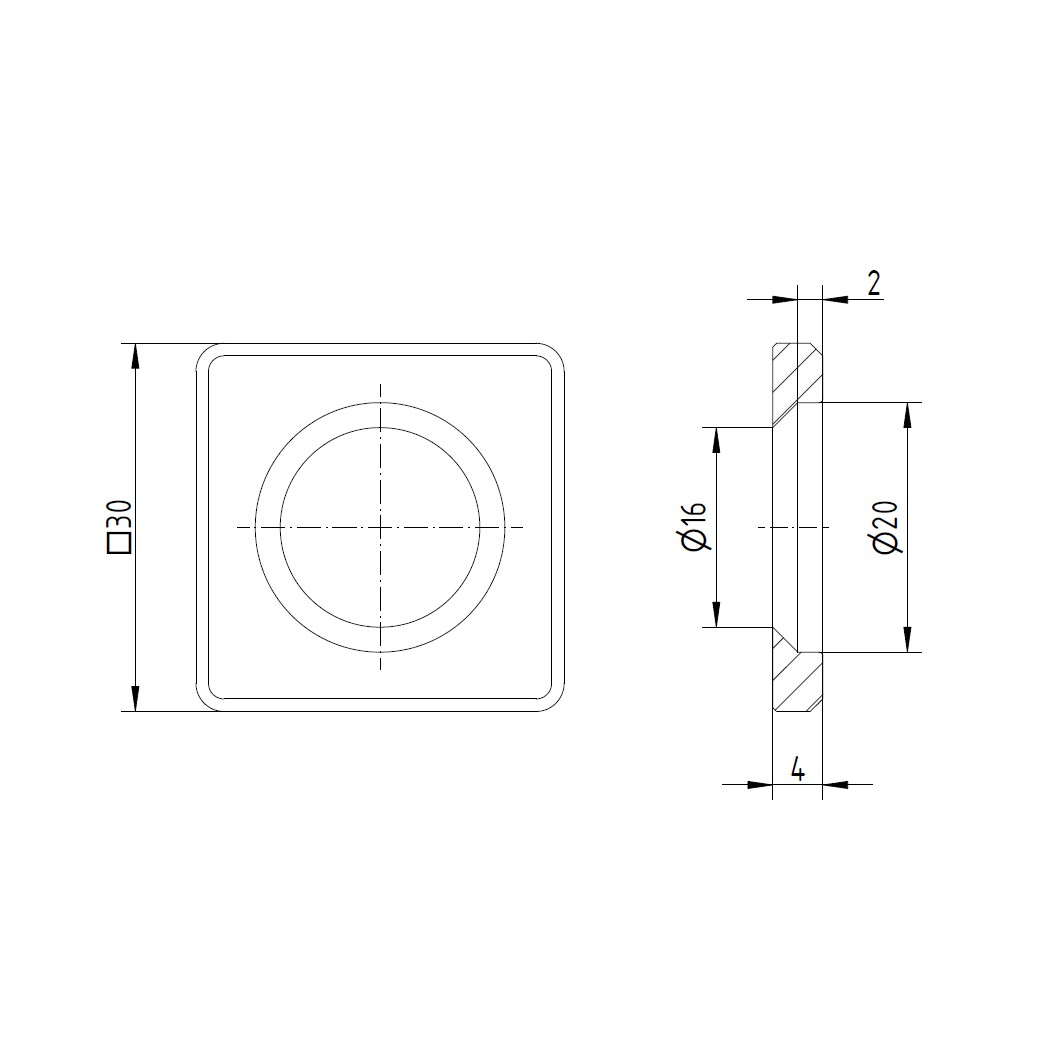 V2A Quadrat-Scheibe 30x30x4 mm mit Senkbohrung für Senkkopfschraube M10 DIN 7991
