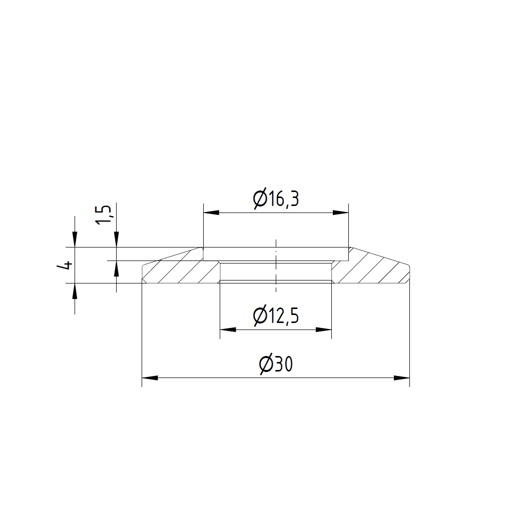 V2A Trapezscheibe Ø30 x 4 mm mit Ausdrehung Ø16,2 x 1,5 mm und Durchgangsbohrung 12,5 mm