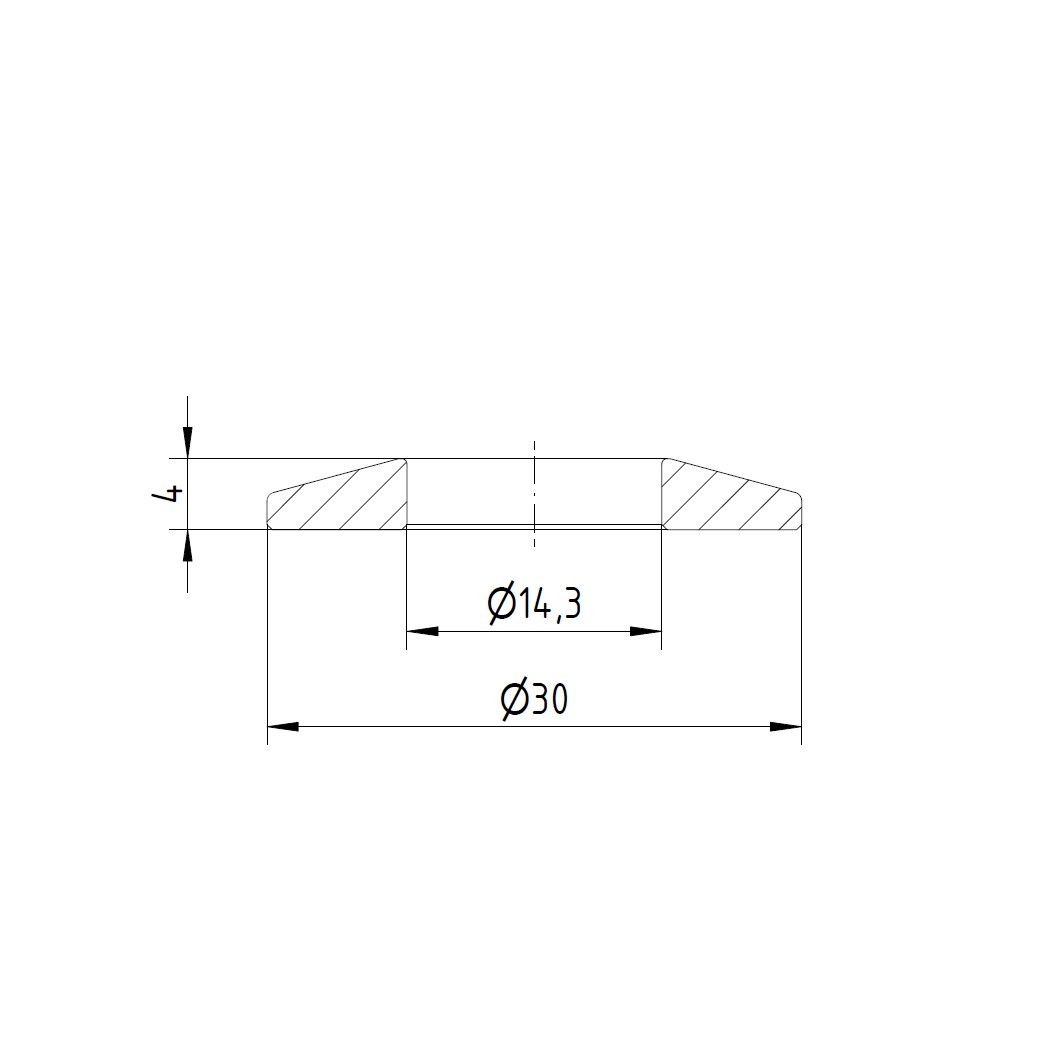 V2A Trapezscheibe Ø30 x 4 mm und Durchgangsbohrung Ø14,3 mm