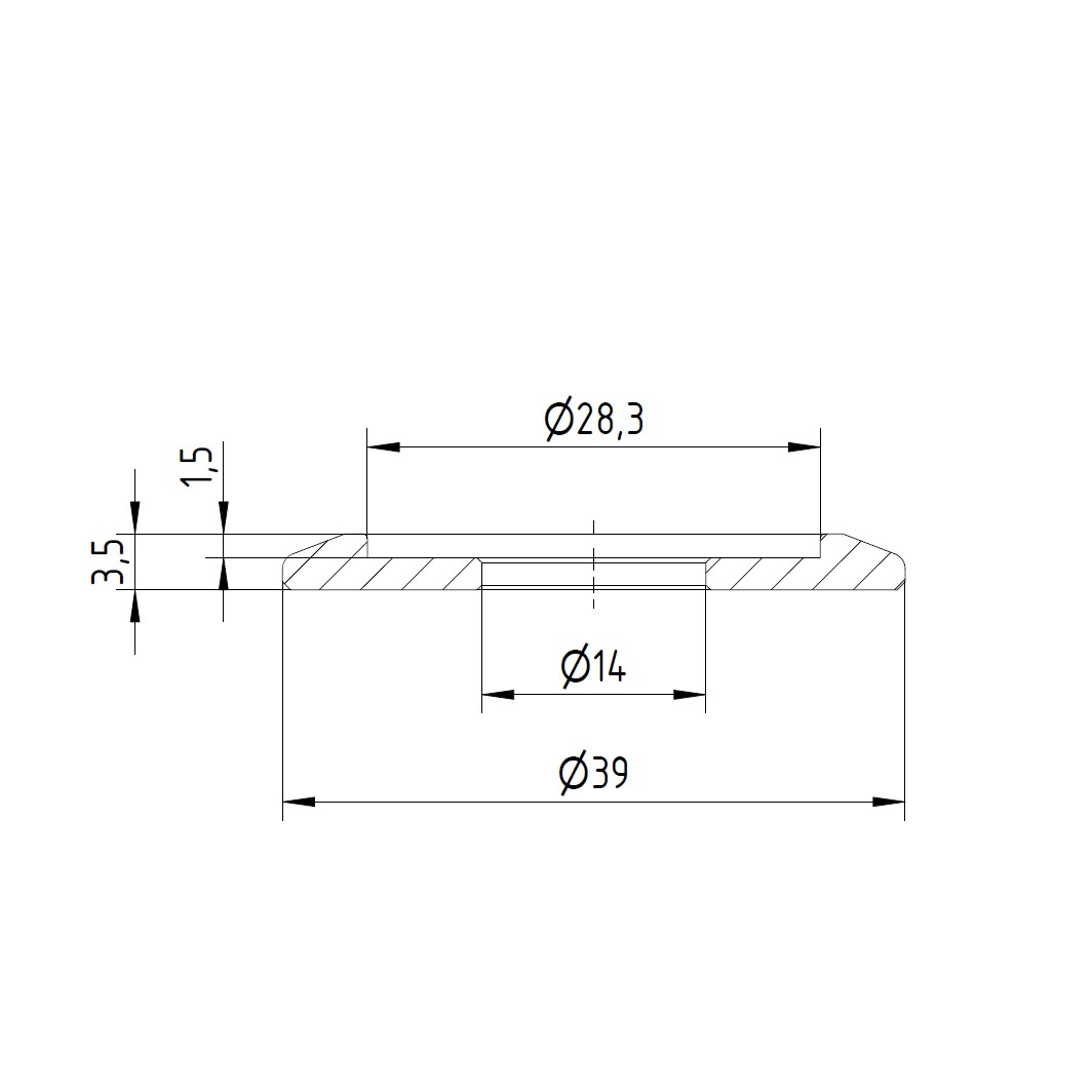 V2A Trapezscheibe Ø39 x 3,5 mm mit Ausdrehung Ø28,0 x 1,5 mm und Durchgangsbohrung Ø14 mm