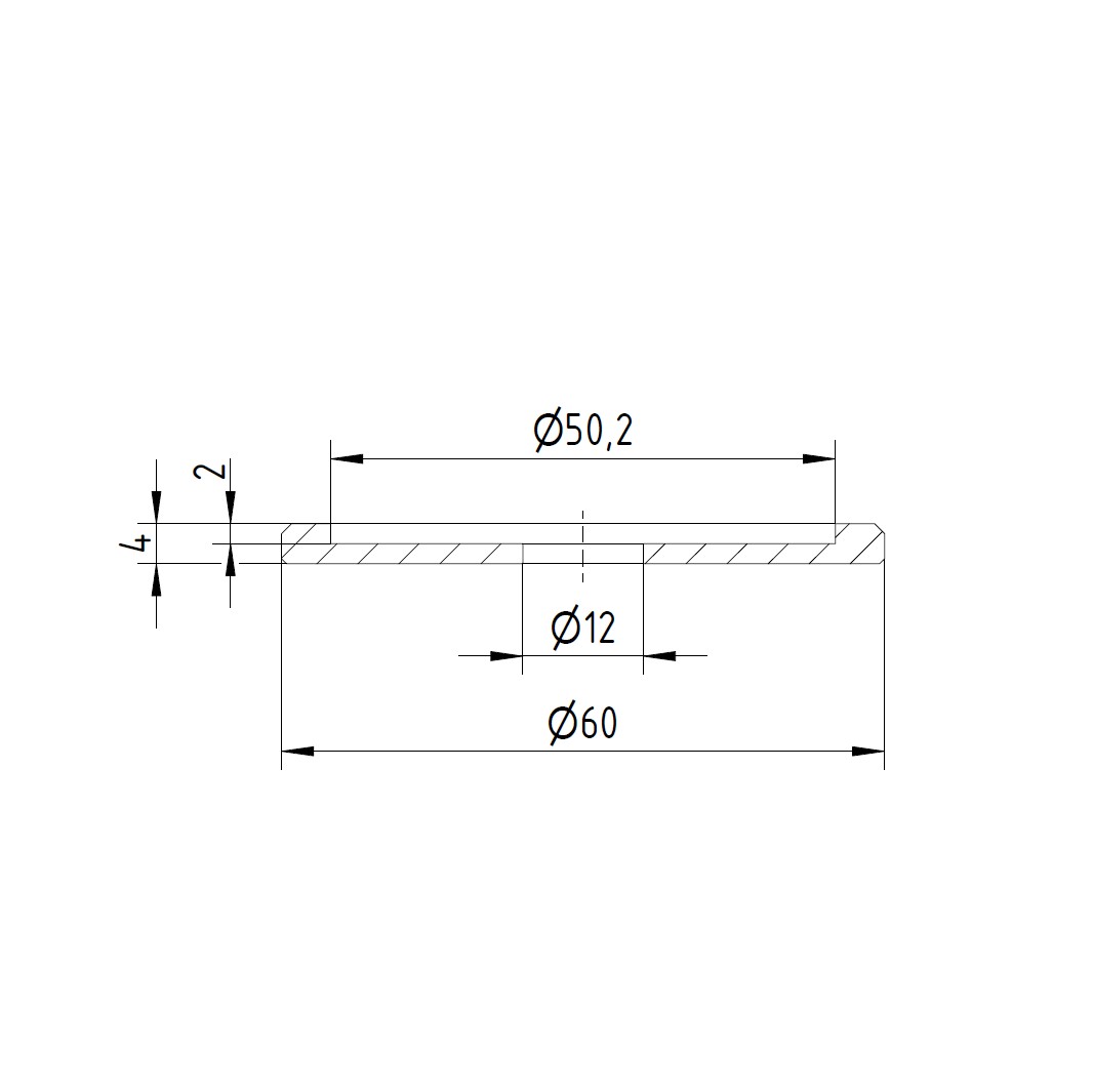 V2A Trapezscheibe Ø60 x 4 mm mit Ausdrehung Ø50,2 x 2,0 mm und Durchgangsbohrung 12,0 mm