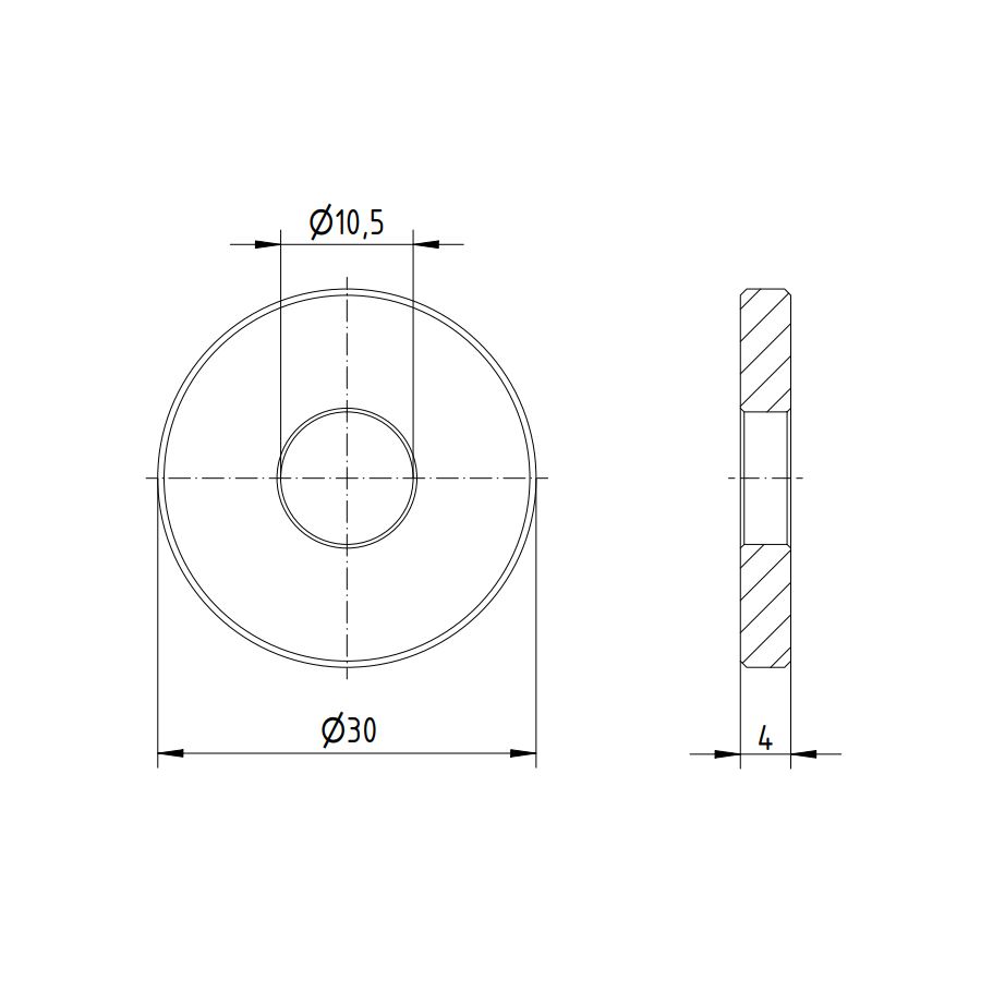 V2A Unterlegscheibe 30 x 4 mm mit Durchgangsbohrung 10,5 mm